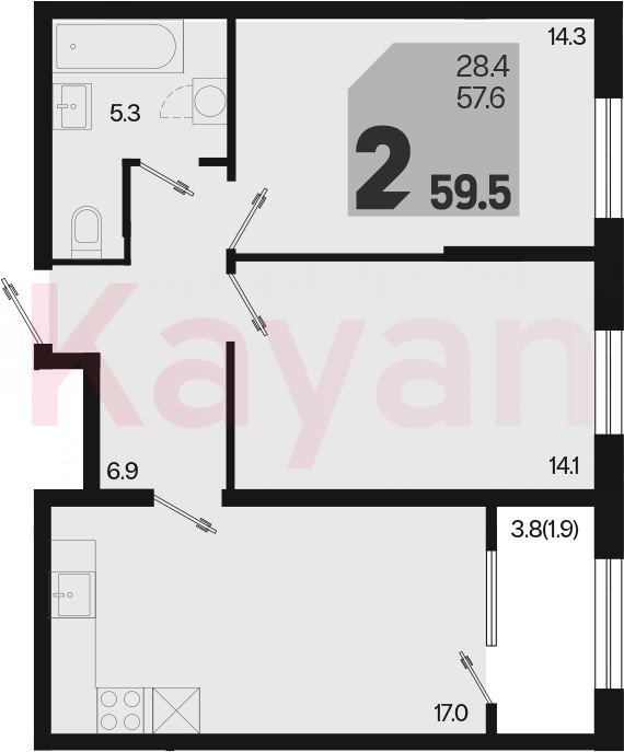 Продажа 3-комн. квартиры, 57.6 кв.м
