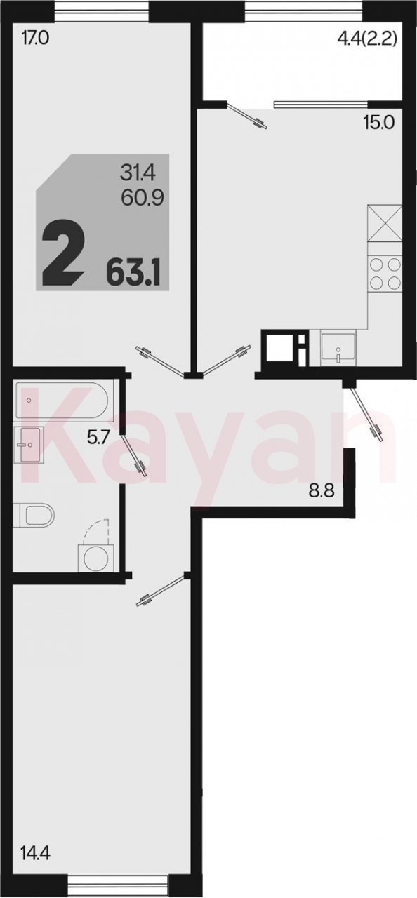 Продажа 3-комн. квартиры, 60.9 кв.м