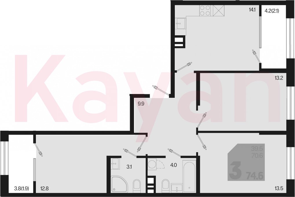 Продажа 3-комн. квартиры, 70.6 кв.м