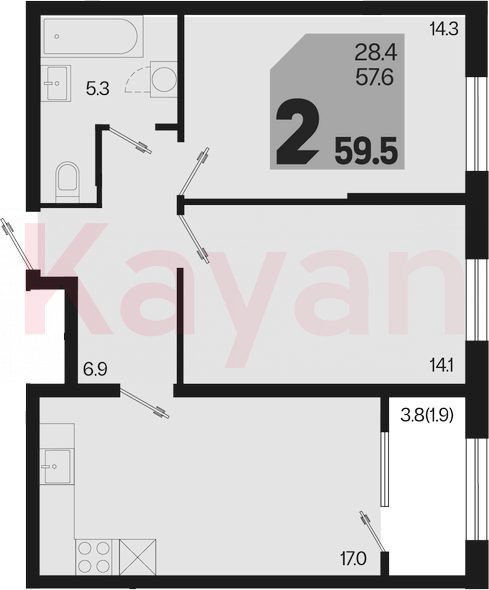 Продажа 3-комн. квартиры, 57.6 кв.м