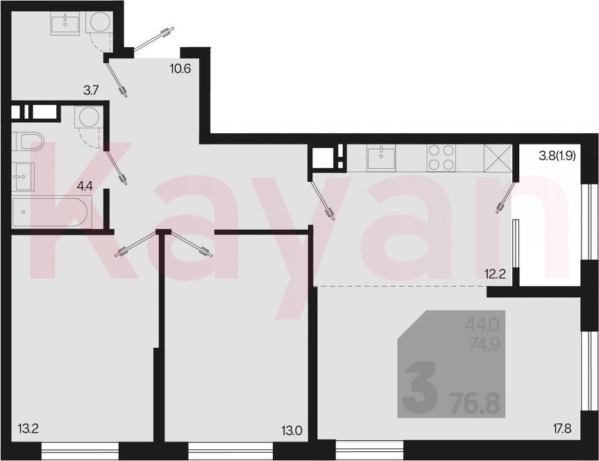 Продажа 3-комн. квартиры, 74.9 кв.м
