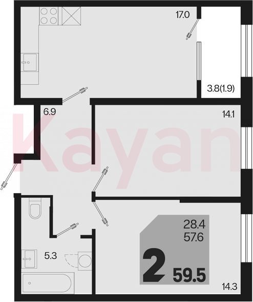 Продажа 3-комн. квартиры, 57.6 кв.м