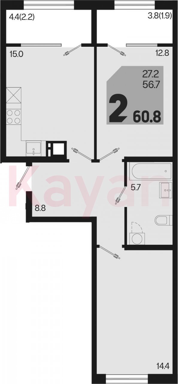 Продажа 3-комн. квартиры, 56.7 кв.м