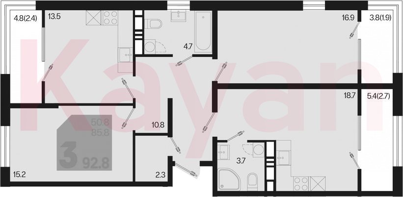 Продажа 3-комн. квартиры, 85.8 кв.м