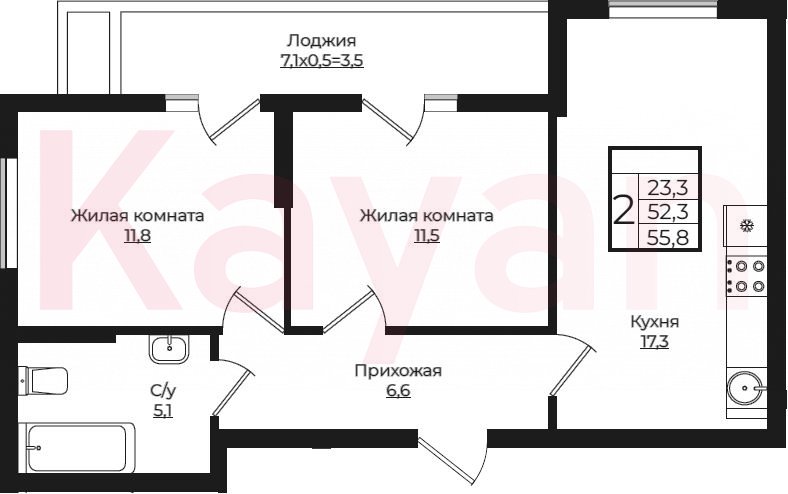 Продажа 3-комн. квартиры, 52.3 кв.м
