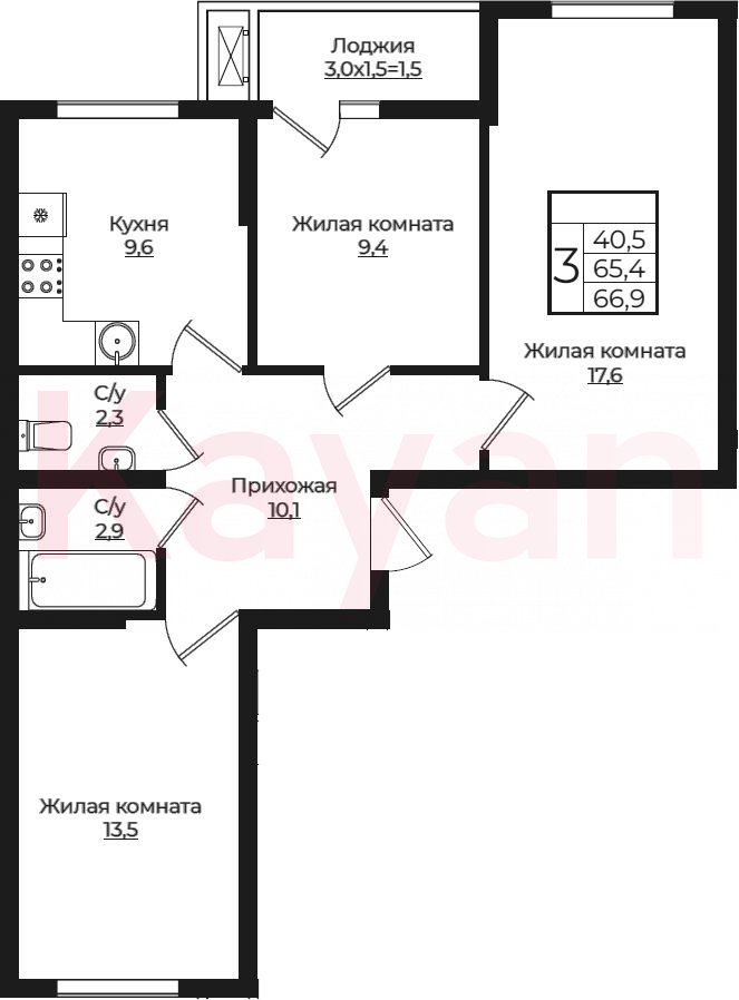 Продажа 3-комн. квартиры, 65.4 кв.м