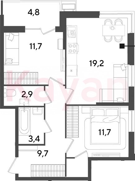 Продажа 3-комн. квартиры, 60.1 кв.м