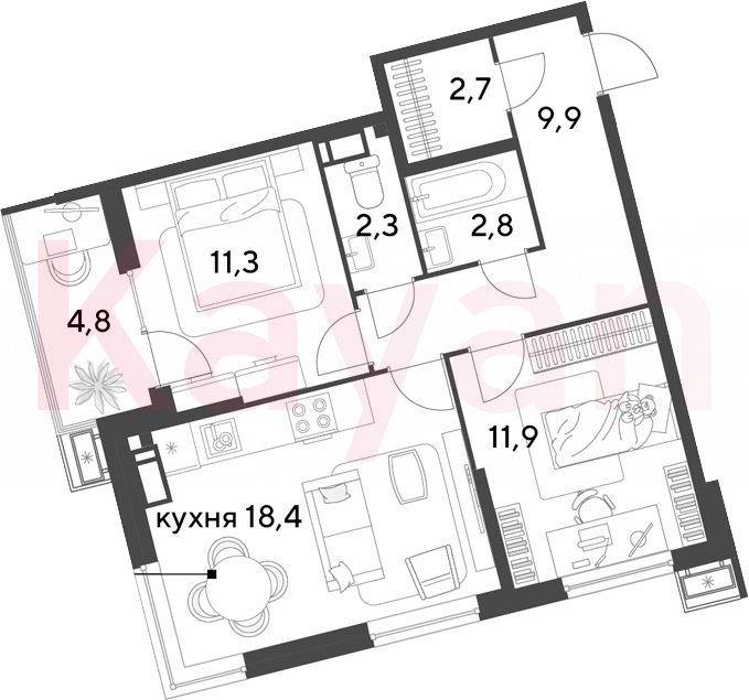 Покупателям в ЖК предложено множество планировочных решений: в наличии квартиры, как классического типа, так и европланировки. Сдаются они с мебелью, со стандартными окнами и высотой полоков 2,72 метра. В квартирах на последних этажах предусмотрено витражное остекление.