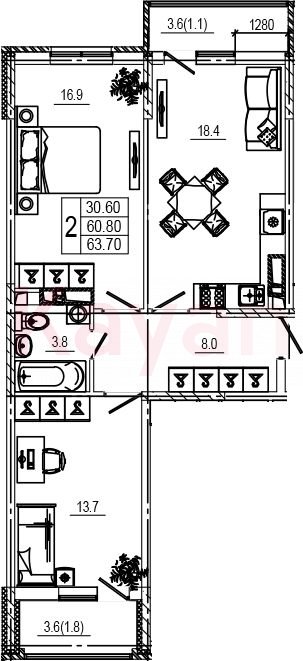 Продажа 3-комн. квартиры, 60.6 кв.м