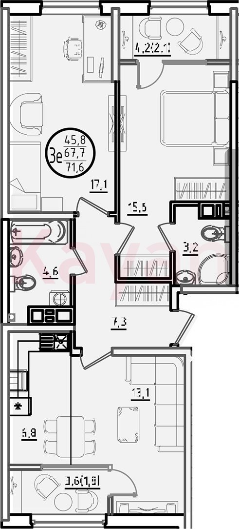 В проекте представлено множество планировочных решений — от студий до просторных 4х-комнатных квартир как в классических, так и в европланировках. Лоты сдаются с черновой и чистовой отделкой, высотой потолков до 3 метров и увеличенными окнами.