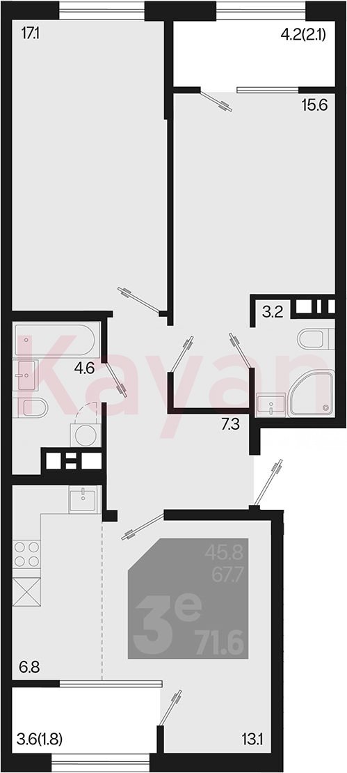 В проекте представлено множество планировочных решений — от студий до просторных 4х-комнатных квартир как в классических, так и в европланировках. Лоты сдаются с черновой и чистовой отделкой, высотой потолков до 3 метров и увеличенными окнами.