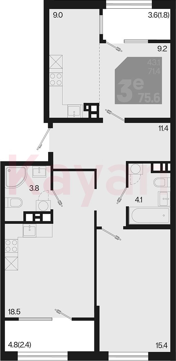 Продажа 3-комн. квартиры, 71.4 кв.м