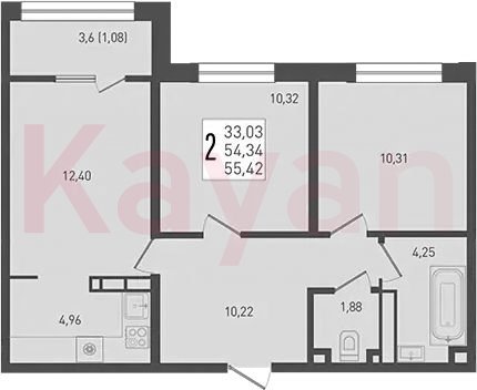 Продажа 3-комн. квартиры, 54.34 кв.м