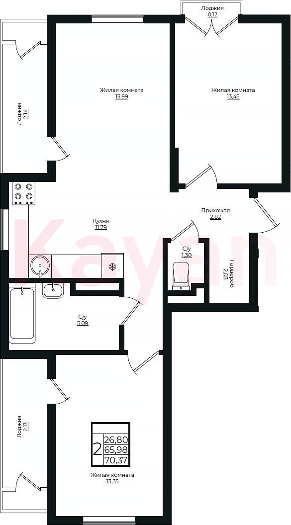 Продажа 3-комн. квартиры, 65.98 кв.м