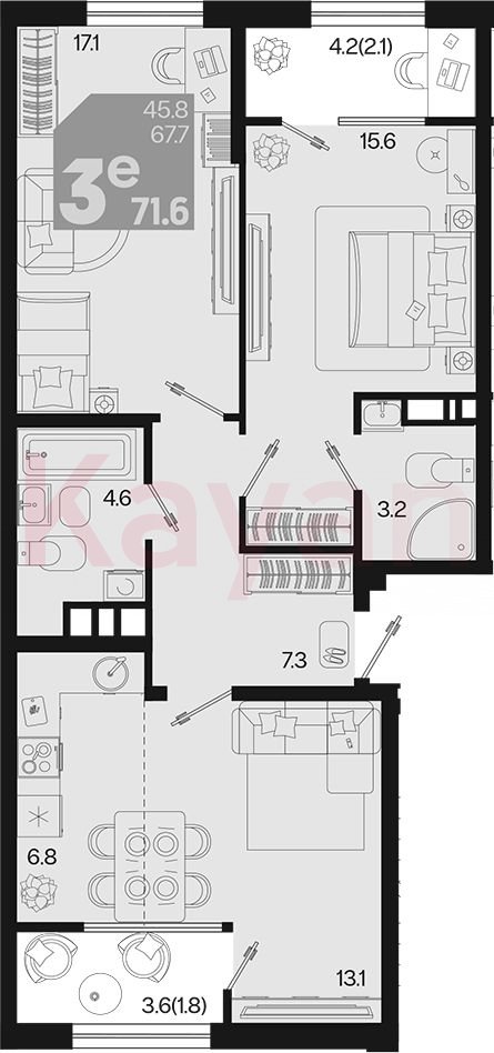 Продажа 3-комн. квартиры, 67.7 кв.м