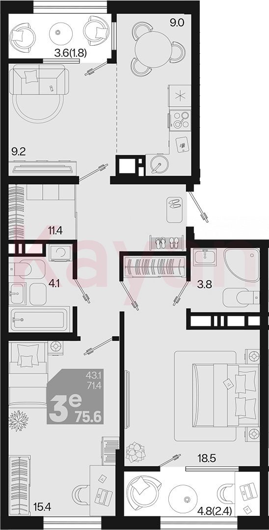 В проекте представлено множество планировочных решений — от студий до просторных 4х-комнатных квартир как в классических, так и в европланировках. Лоты сдаются с черновой и чистовой отделкой, высотой потолков до 3 метров и увеличенными окнами.