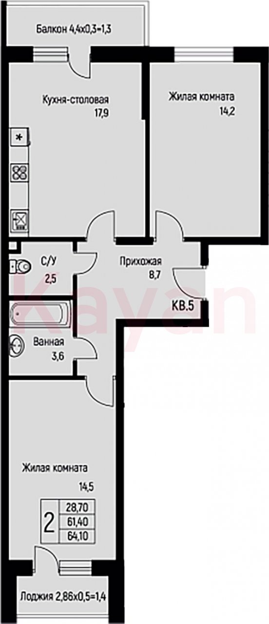 Продажа 3-комн. квартиры, 61.4 кв.м
