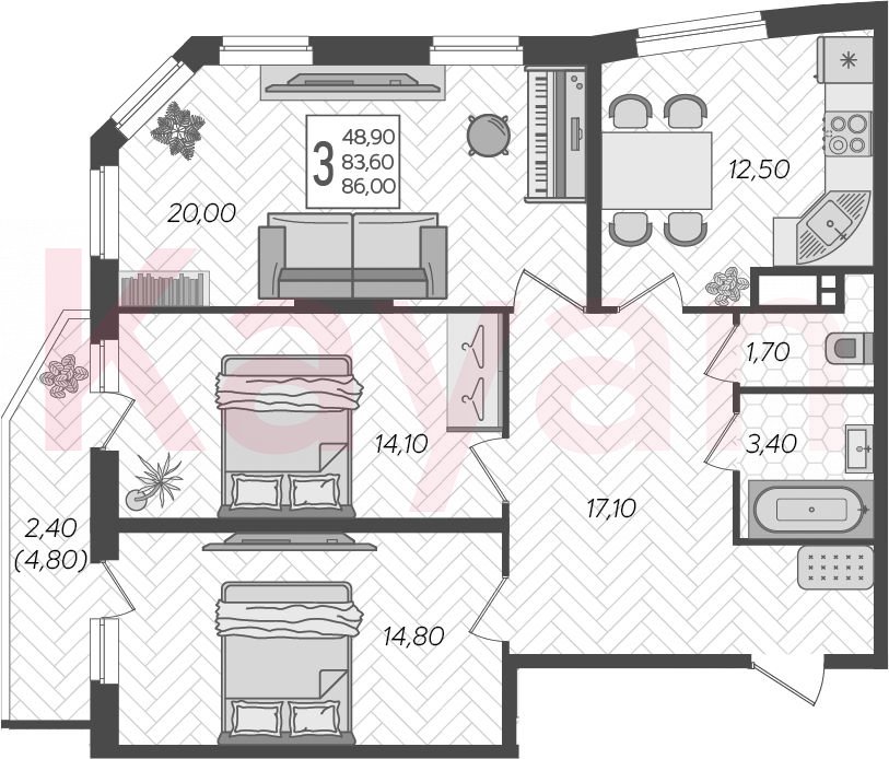 Продажа 3-комн. квартиры, 83.6 кв.м