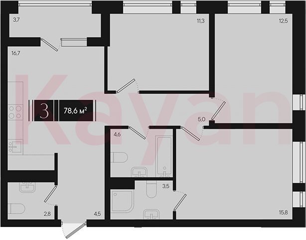 Продажа 3-комн. квартиры, 76.75 кв.м