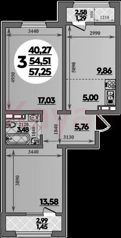 Продажа 3-комн. квартиры, 54.51 кв.м