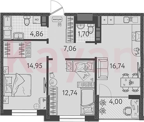 Продажа 3-комн. квартиры, 58.05 кв.м
