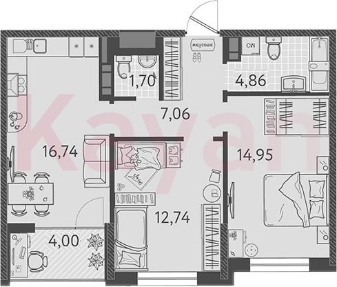В проекте представлено множество планировочных решений: в наличии квартиры, как классического типа, так и европланировки. Сдаются они с подчистовой отделкой. Высота потолков — 2,85 метра. В лоджиях предусмотрено панорамное остекление.