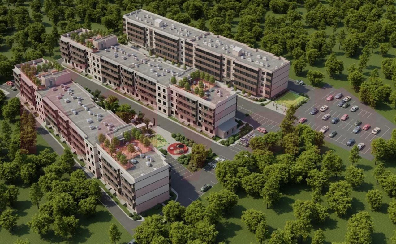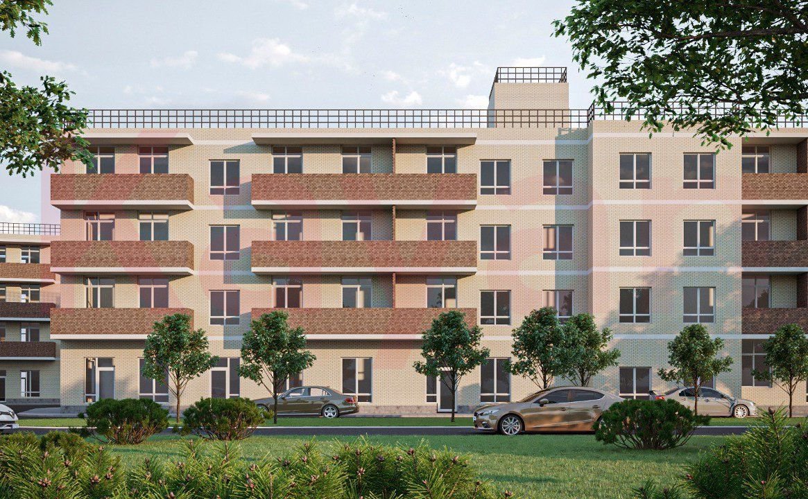 Жилой комплекс, высотой в 4 этажа, построен по долговечной кирпично-монолитной технологии. Фасады облицованы кирпичом темных и светлых оттенков.