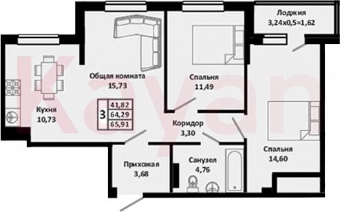 Продажа 3-комн. квартиры, 64.29 кв.м
