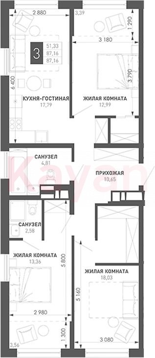 Продажа 3-комн. квартиры, 80.21 кв.м
