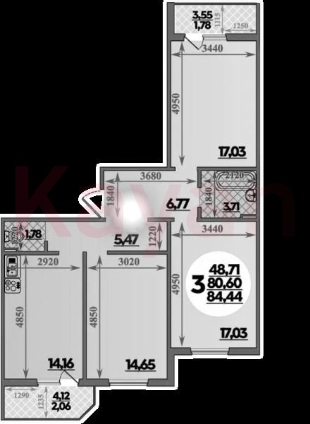 Продажа 3-комн. квартиры, 80.6 кв.м
