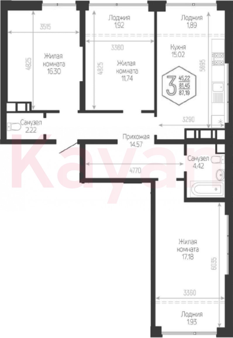 Продажа 3-комн. квартиры, 81.45 кв.м