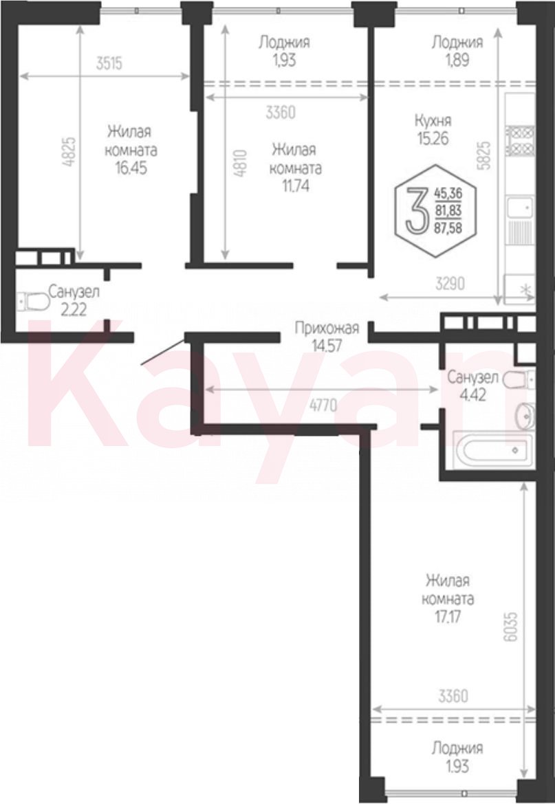 Продажа 3-комн. квартиры, 81.83 кв.м