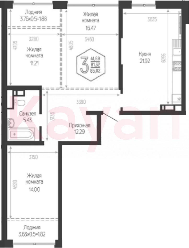 Продажа 3-комн. квартиры, 81.32 кв.м