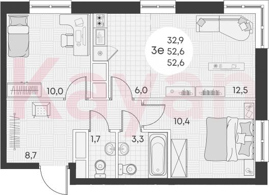 Продажа 3-комн. квартиры, 52.6 кв.м