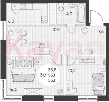 Продажа 3-комн. квартиры, 53.1 кв.м