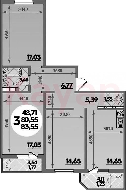 Продажа 3-комн. квартиры, 80.55 кв.м