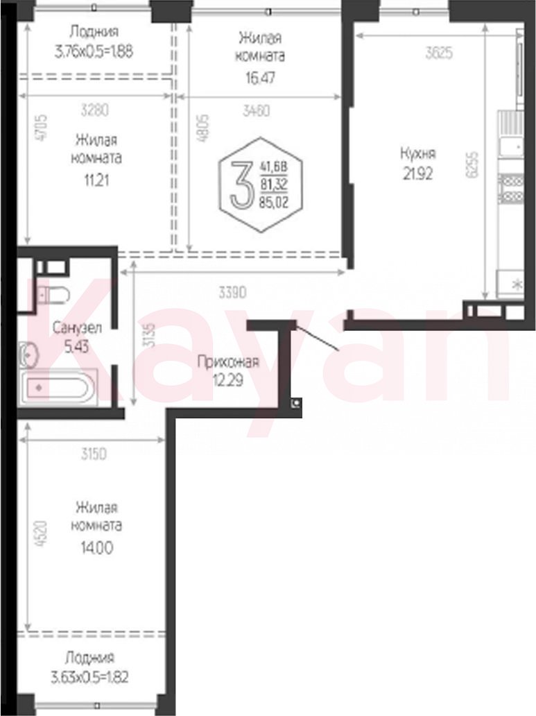 Продажа 3-комн. квартиры, 81.32 кв.м