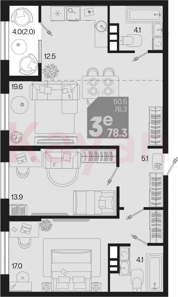 Продажа 3-комн. квартиры, 76.3 кв.м