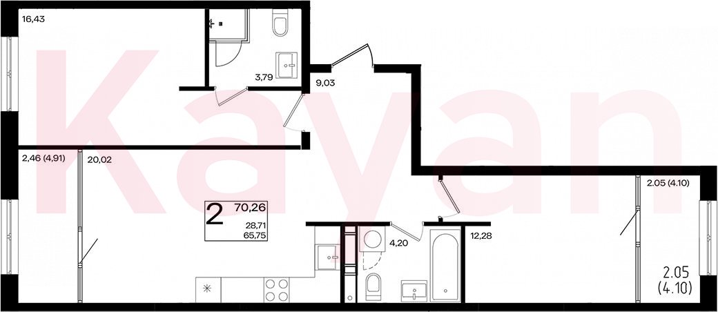 Квартира в ЖК «Патрики» (ГК Точно. Краснодарский край) литер 2 очередь 2, Кирпично-монолитный, 3 к.кв., 65.75 кв.м., 10/18, высота потолков: 2.8 м, жилая площадь: 28.71 кв.м., возможна ипотека, площадь кухни 20.02 кв.м.,