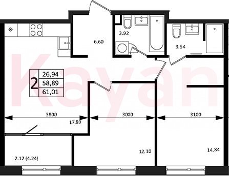 Продажа 3-комн. квартиры, 58.89 кв.м