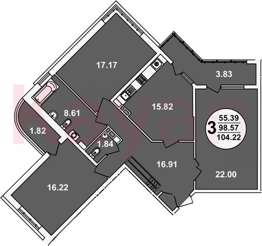 Продажа 3-комн. квартиры, 98.57 кв.м