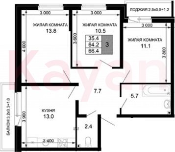Продажа 3-комн. квартиры, 64.2 кв.м