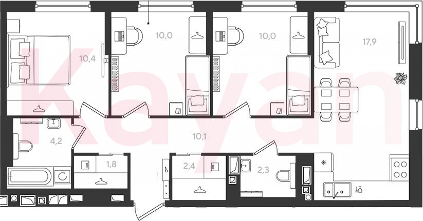 Продажа 3-комн. квартиры, 69.1 кв.м