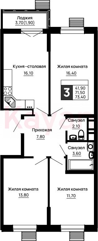 Продажа 3-комн. квартиры, 71.5 кв.м