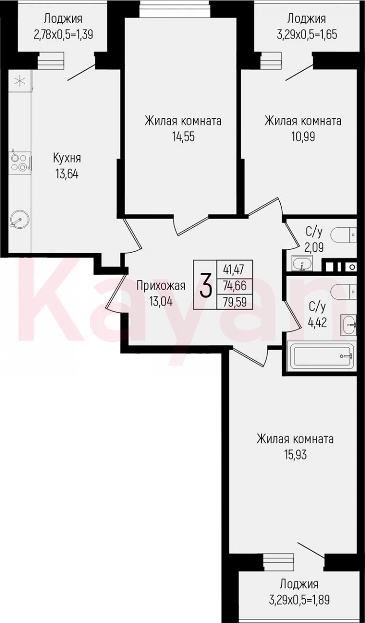Продажа 3-комн. квартиры, 74.66 кв.м