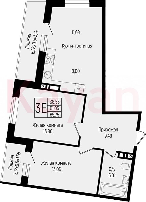Продажа 3-комн. квартиры, 60.91 кв.м