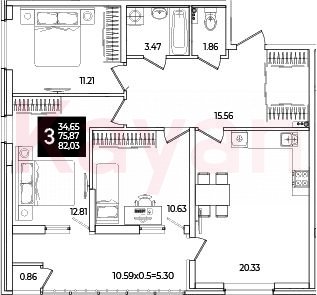 Продажа 3-комн. квартиры, 75.87 кв.м