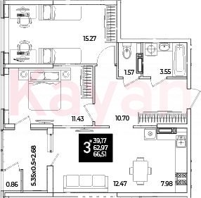 Продажа 3-комн. квартиры, 62.97 кв.м