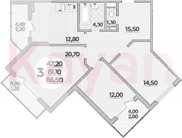 Продажа 3-комн. квартиры, 81.6 кв.м