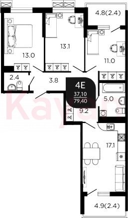 Продажа 4-комн. квартиры, 76.8 кв.м